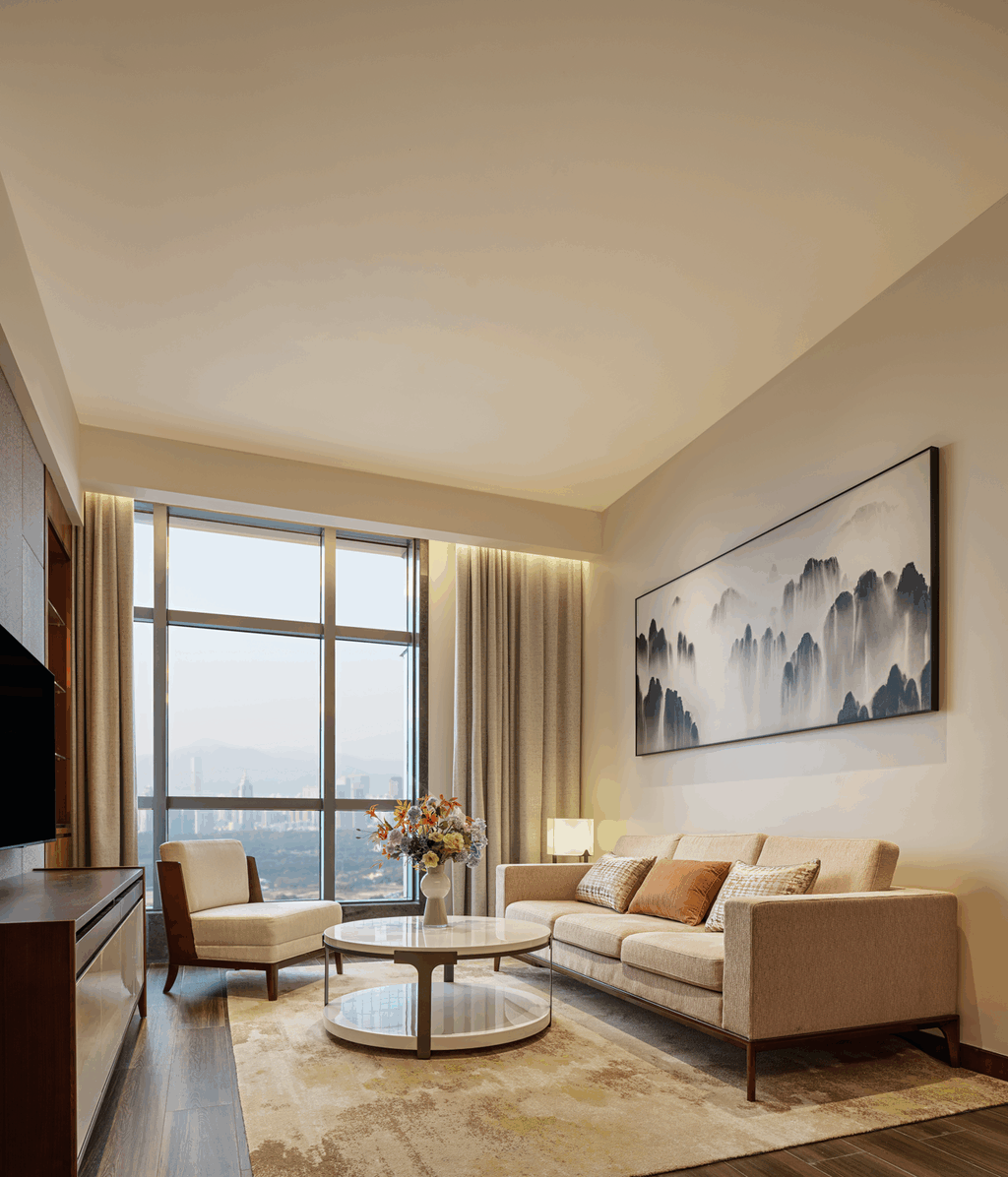 房型有标间、一房一厅、两房一厅和三房一厅可选,大家根据自己的需求和预算来选择。如果只是1-2人入住,可以选择标间或一房一厅;如果有多人家属陪住、可以选择两房一厅和三房一厅。