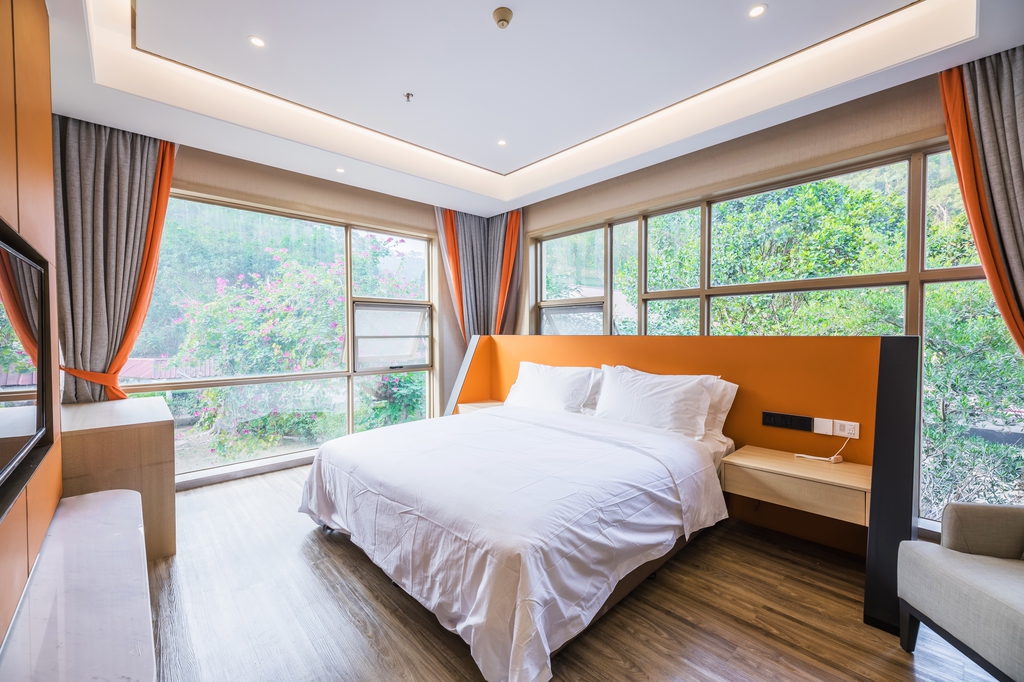 特色:坐落在青山环抱之中,邻近银湖,空气质量好。