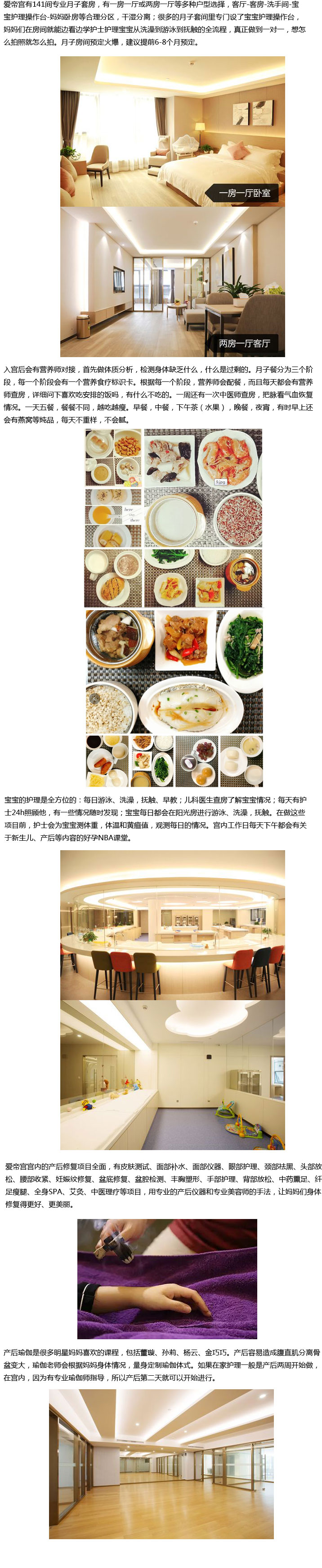 以下是爱帝宫南山院的环境和服务项目部分介绍,具体的还要妈妈们多去现场看看,感受下月子中心的环境和服务水平,选择合适自己的月子中心,理智选择适合的价格套餐。
