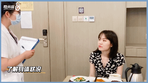 刚好到了中午饭的时间,生活助理把月子餐送给我以后,营养师就来到房间,初步了解一下我的身体状况和平时吃饭的习惯。