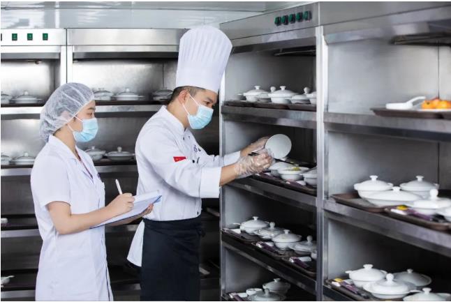 可视化厨房,是爱帝宫展现餐食“安心”的一扇窗,开放厨房监控大屏,妈妈们可以清晰地看到作业动态,更有厨房7S管理标准,每位厨师持有健康证,规范穿戴厨师帽、面罩等细则。