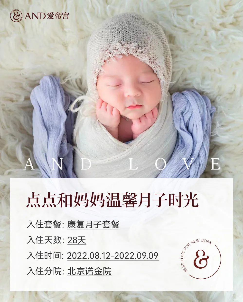 刚怀孕我就和宝爸决定要入住月子中心,月子期想好好恢复。寻找月子中心的过程中,知道了爱帝宫是上市公司,直营品牌。宝宝的护理流程很科学,妈妈的护理也很全面贴心,月子餐和乳房管理以及产后修复都是根据自己的身体情况个性化定制的。整体的团队服务和科学护理我和宝爸都觉得非常专业,很放心。