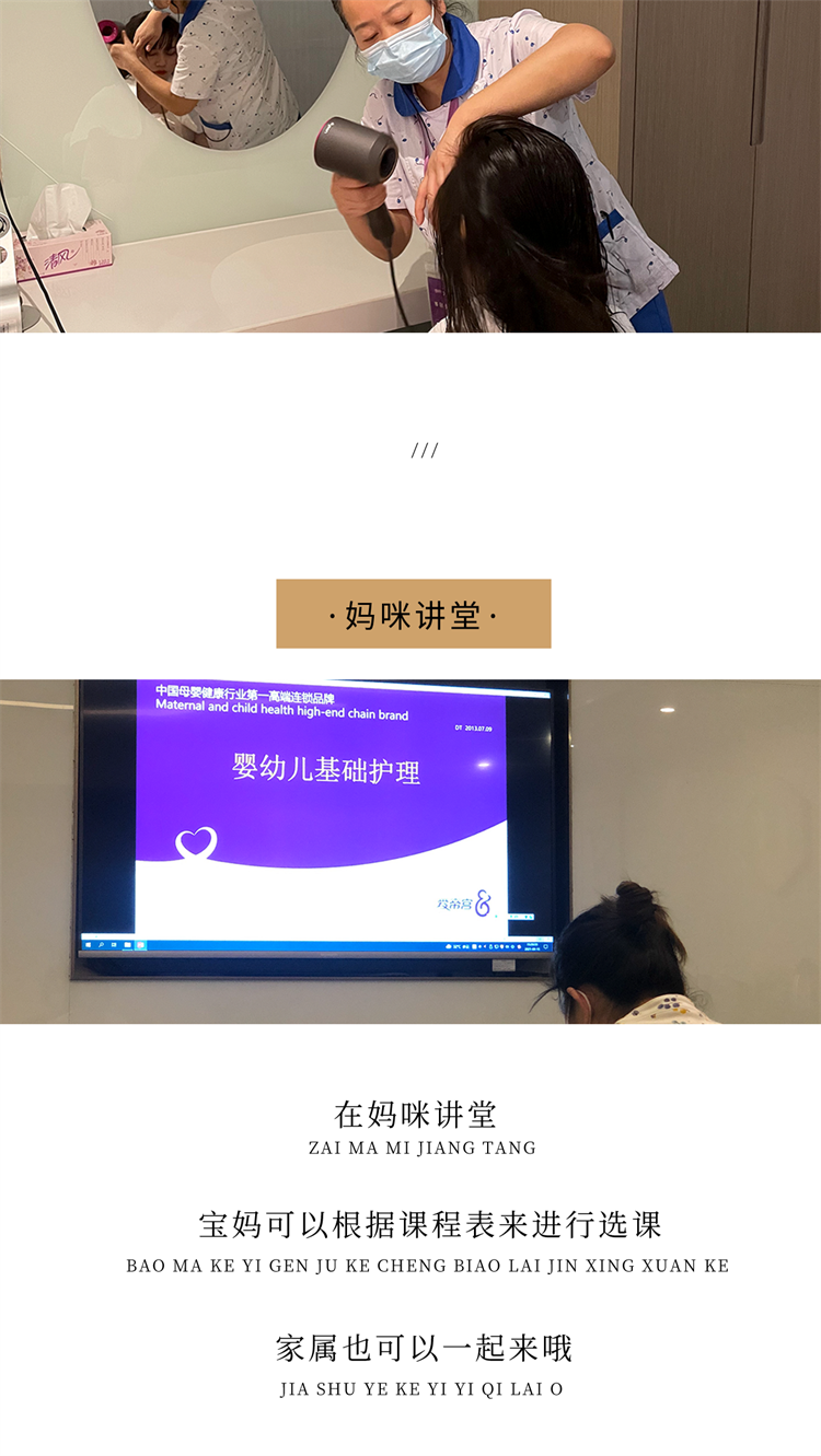 在妈咪讲堂,宝妈可以根据课程表来进行选课,家属也可以一起来哦