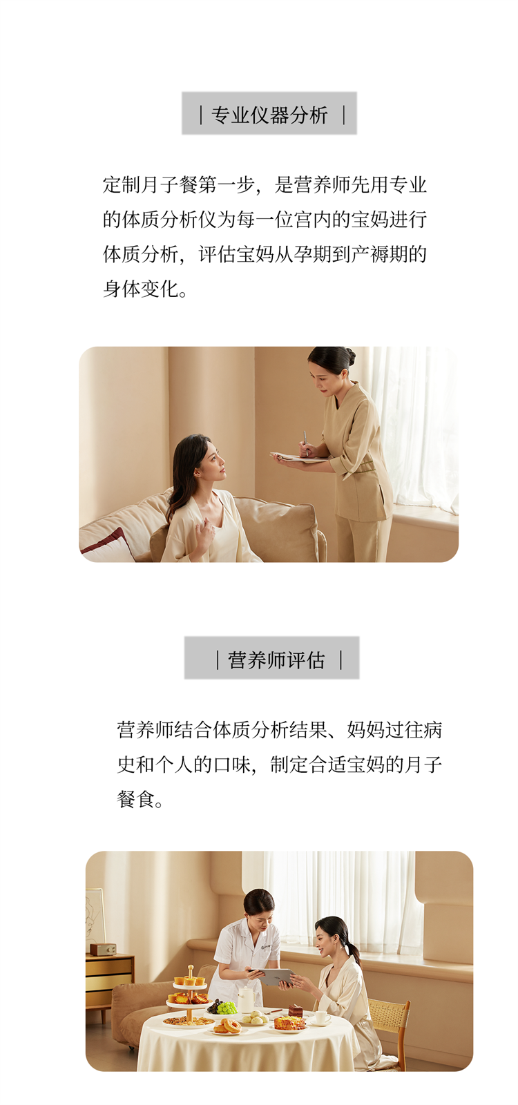 最后营养师结合各项评估结果后,会再跟厨师进行沟通,依据每个妈妈不同的身体情况和个人口味,调整和修改妈妈的月子餐单,做到真正的“个性化定制月子餐”。