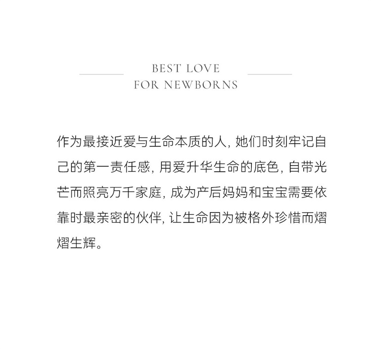 作为最接近爱与生命本质的人,她们时刻牢记自己的第一责任感,用爱升华生命的底色,自带光芒而照亮万千家庭,成为产后妈妈和宝宝需要依靠时最亲密的伙伴,让生命因为被格外珍惜而熠熠生辉。