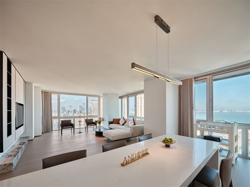 这栋公寓是全球首个WELL铂金+健康建筑三星的双认证公寓,更是深圳唯一一家配备了“五恒系统”的公寓,恒温、恒湿、恒氧、恒洁、恒净。