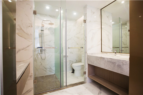▲ 妈妈卧房与宝宝护理间用半透明的钢化白玻璃区隔,